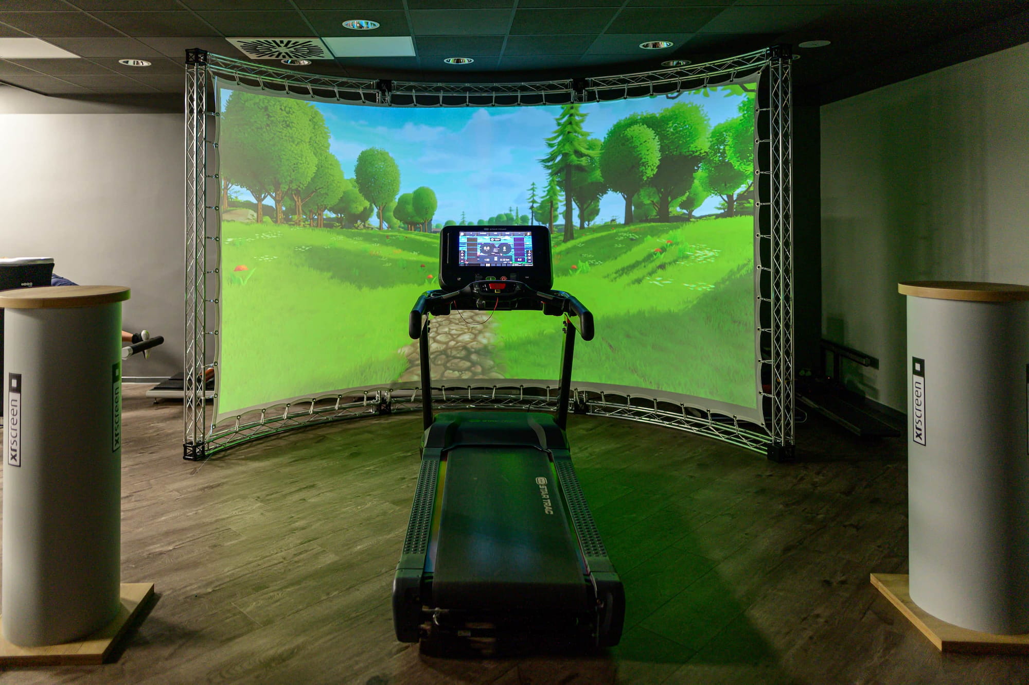 Aufbau, set-up, Einmessung und Einrichten erfolgen vorab am vorgesehenen Platz. Wer das Trainingsgerät nutzen möchte, muss lediglich per QR-Code die Strecke auswählen und kann sich voll auf sein Training konzentrieren.